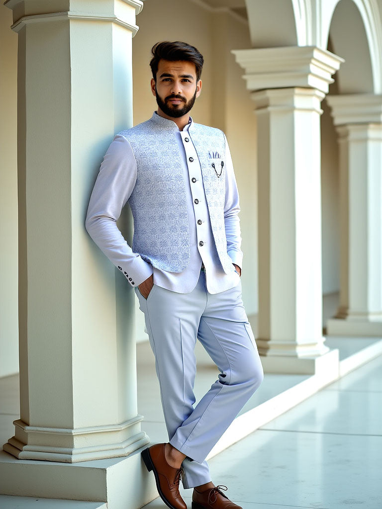 Image of Sky Colour Self Design with Jacket Style Jacquard Jhodpuri Set - South India Shopping Mall Image of Sky Colour Self Design with Jacket Style Jacquard Jhodpuri Set - South India Shopping Mall