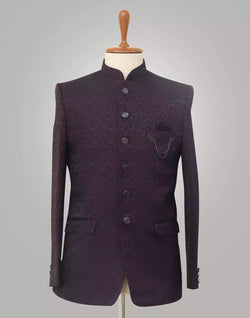 Image of Maroon Coloured Self Weaved Jacquard Bandhgala Suit - South India Shopping Mall Image of Maroon Coloured Self Weaved Jacquard Bandhgala Suit - South India Shopping Mall