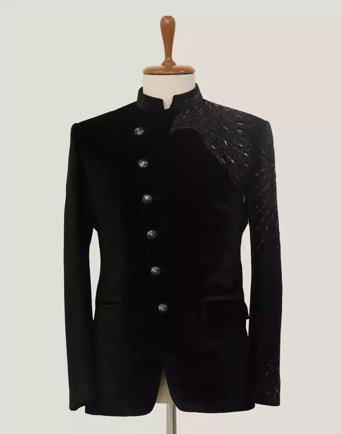 Image of Massive Black Polynosic Pearls work Bandhgala Suit - South India Shopping Mall Image of Massive Black Polynosic Pearls work Bandhgala Suit - South India Shopping Mall
