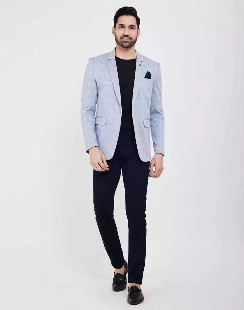 Image of Self Textured Sky Blue Polyester Viscose Blazer - South India Shopping Mall Image of Self Textured Sky Blue Polyester Viscose Blazer - South India Shopping Mall