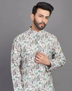 Exclusive All Over Botanical and Novelty Print Cotton Kurta blends nature-inspired patterns with modern design, offering a stylish yet comfortable option for casual or festive wear. Crafted from soft, breathable cotton, it ensures all-day comfort while adding a touch of elegance to your wardrobe. Perfect for relaxed outings or laid-back gatherings, it’s a versatile piece that combines both style and ease.