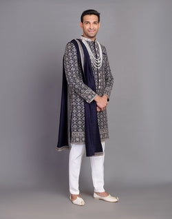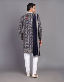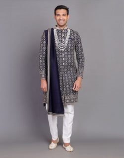 All Over Premium Thread Embroidery Design Indo-Western Set is crafted from luxurious raw silk, featuring intricate thread embroidery across the fabric. The set includes a stylish Indo-Western top with delicate floral or geometric motifs, adding sophistication to the attire. Paired with a matching raw silk dupatta, the ensemble radiates elegance and charm. The outfit is complemented by a comfortable cotton pyjama bottom, offering both style and ease. Perfect for festive occasions or formal gatherings, this set combines traditional craftsmanship with contemporary flair.