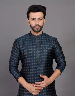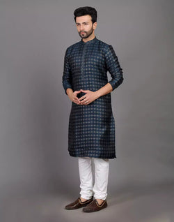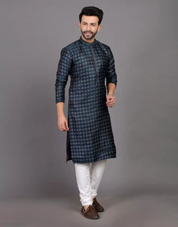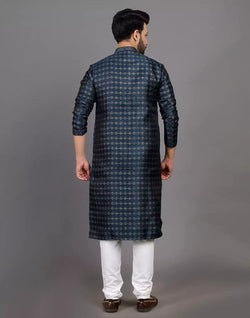 Feel the elegance in this royal look thread work soft silk kurta pyjama set that gives you the perfect fit,comfort and style suitable for any small occasions.