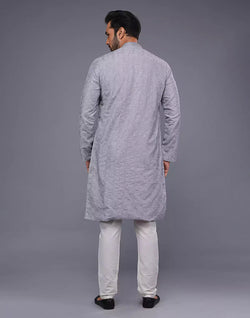 This beautiful and bright kurta's is made of Soft Silk fabric and has intricate thread work all over it. The bottom is made of pure white cotton fabric and has a lovely silk border. It's a perfect outfit for a special occasion or a festive event.