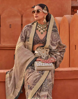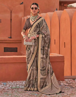 Make a statement in our Beige Color Graphic Printed Classic Jute Silk Saree. The subtle color and intricate design add a touch of elegance to your ensemble, making you stand out in the crowd.