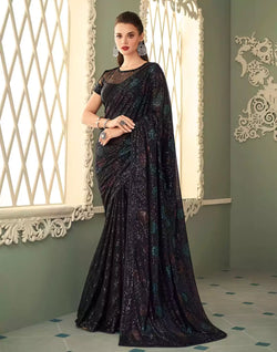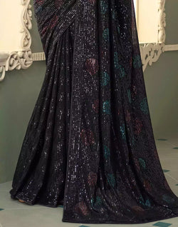 Steal the spotlight with our mesmerizing Plain Georgette Sequence Saree in stunning black. Crafted to perfection, this saree exudes elegance and allure, making it an absolute must-have for any confident woman. The intricate sequence work adds a touch of glamour, elevating your style quotient effortlessly. Be the epitome of grace and sophistication as you drape this masterpiece that is designed to make heads turn wherever you go. Own the room with confidence and let your aura shine in this enchanting black georgette saree.
