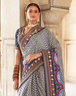 Introducing Zig Zag, the epitome of elegance and style. This stunning Blue Coloured Zig Zag Saree is designed to make heads turn. With its mesmerizing pattern and luxurious fabric, it effortlessly accentuates your curves, making you feel like a diva.