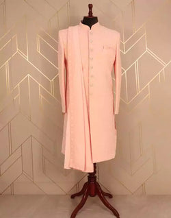 Elegant and stunning charismatic peach floral chiffon chikankari indo-western set for the handsome man in you.