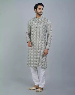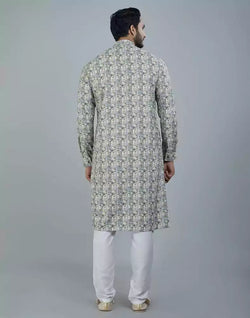 Elevate your style game with our Classy Pista Green Geometric Print Cotton Kurta. Crafted from premium quality cotton, this kurta boasts a stunning geometric print that exudes sophistication and elegance. Perfect for any occasion, this piece is sure to turn heads and make you feel confident in your own skin. Don't miss out on adding this versatile must-have to your wardrobe today.
