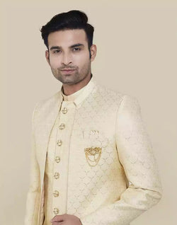 Stylish mens kurta-raw silk, bottom- silk embroidery with thread work on kurta is a luxurious and stylish choice for men. The raw silk material is of high quality and the embroidery work on the bottom of the kurta is simply beautiful. This kurta is perfect for special occasions or even as everyday wear. The kurta looks best when paired with matching bottoms and shoes.
