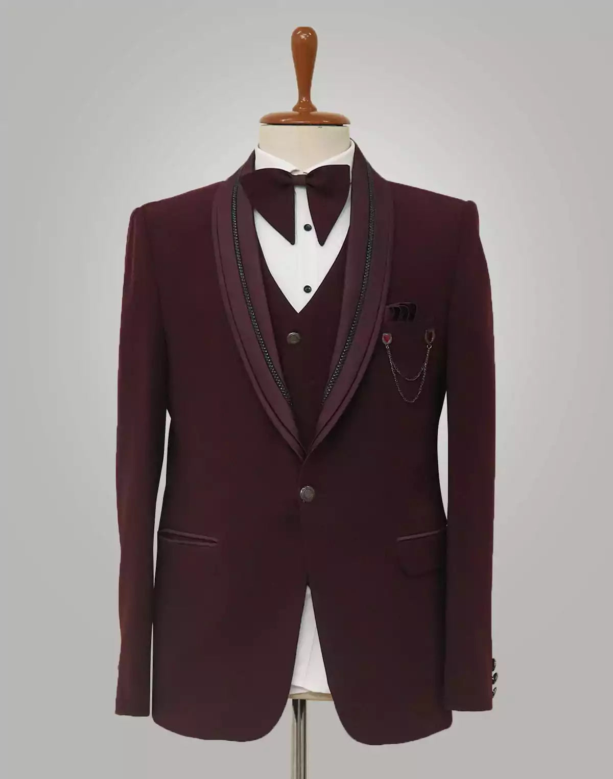 Look classy and stylish in this suit set and make a style statement.NOTE: NOTE: 5 piece suit includes a matching suit jacket, trousers (unstitched ? 1.30 mtrs), a waistcoat (vest), a tie and a white shirt.