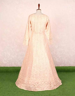 Look fantabulously elegant in this intricate Designer Peach colour Geometric Chikankari Georgette Crop Top and lehenga seton your special day
