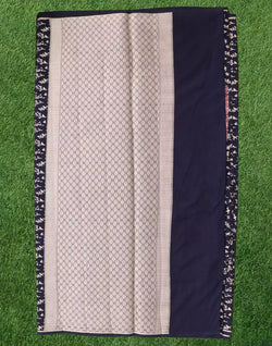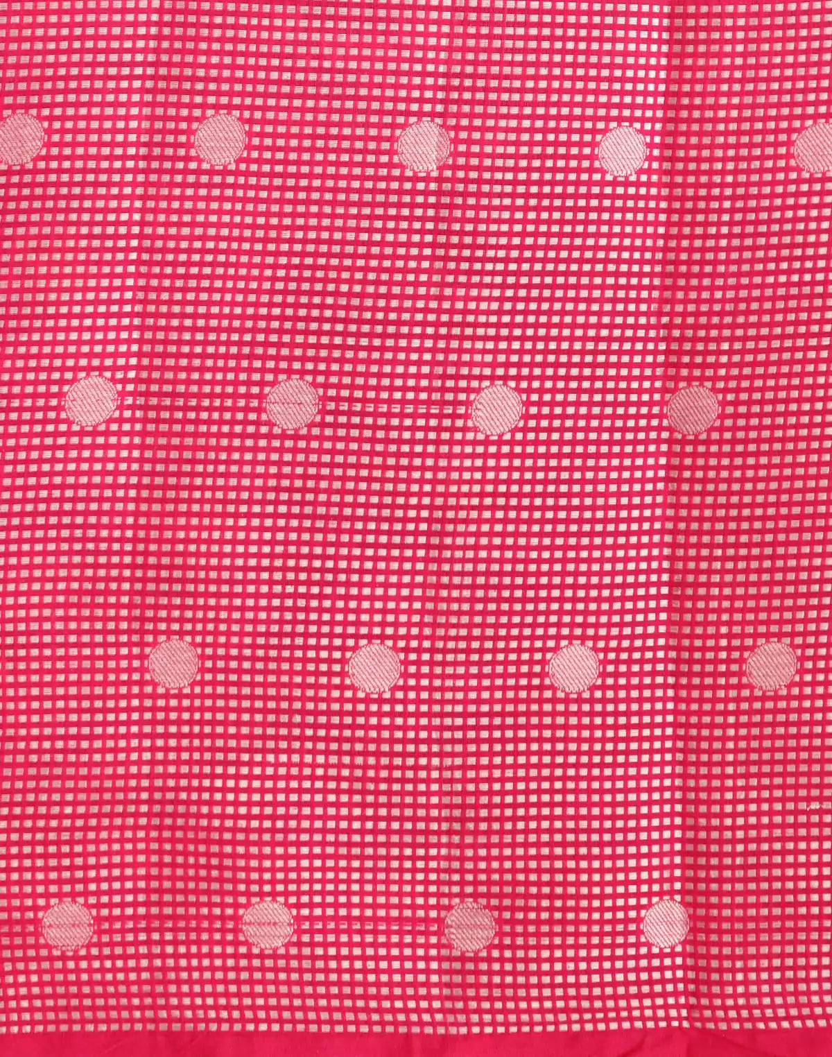 Attractive and beautiful Banaras Fancy Saree with all over silver zari birds motifs and paired with golden zari contrast pink coloured blouse.