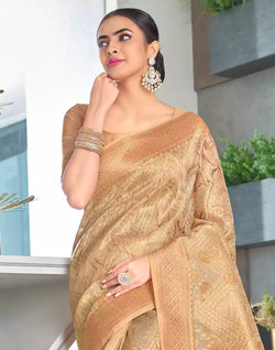 Look bright and beautiful in this festive season draped in this Elegant of Latest Gold Coloured Jute saree and get the compliments you would wish to.