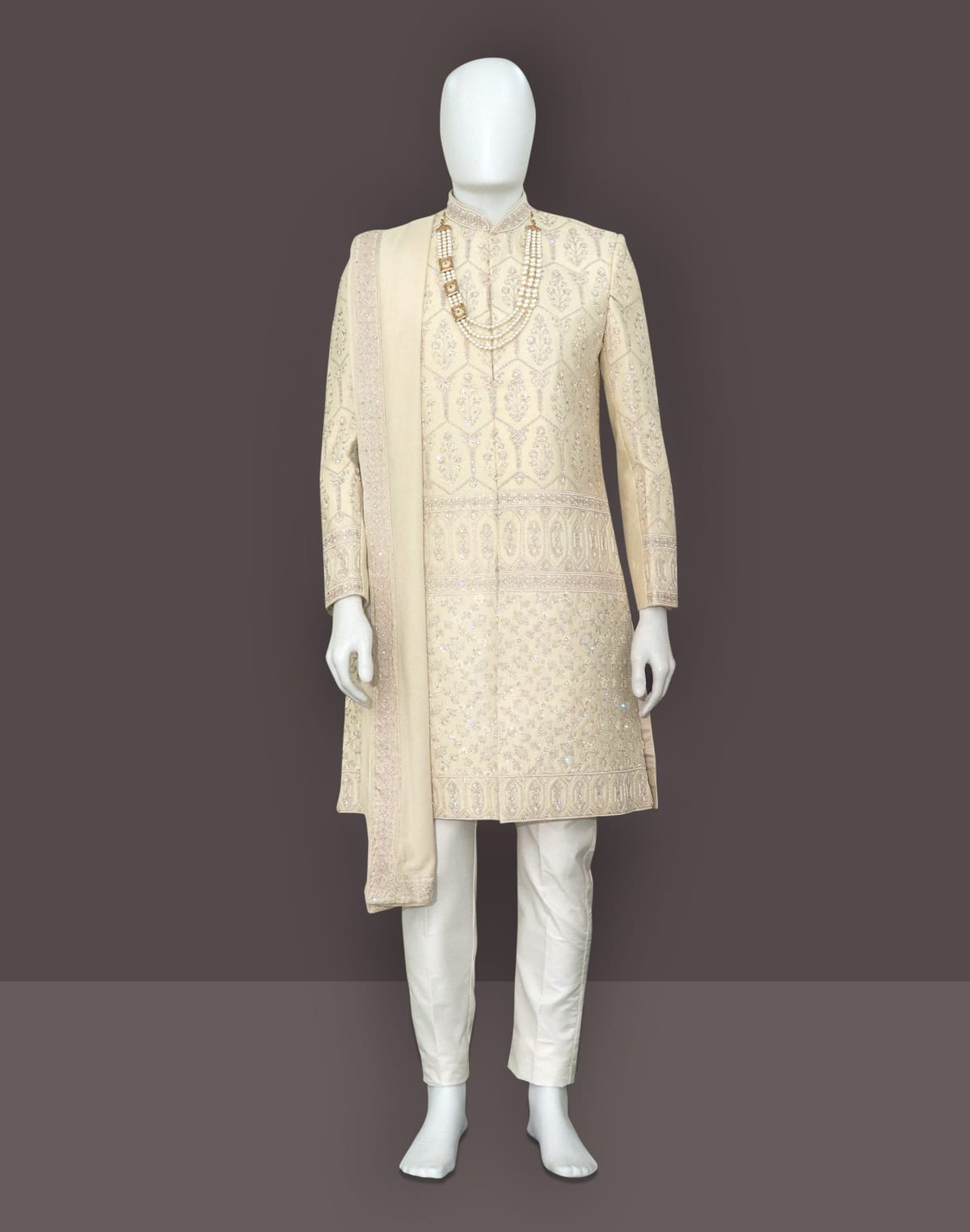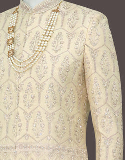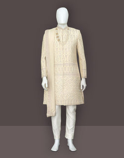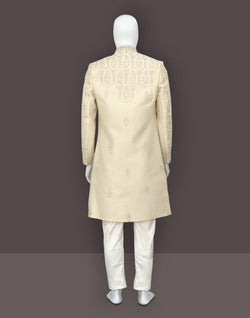 Step out in style with our Fashionable Fawn Raw Silk Indo Set. This elegant ensemble features intricate embroidery work, a matching dupatta, and fawn pyjama with mala for added flair. Be the trendsetter you were born to be and elevate your wardrobe with this must-have outfit. Feel confident, look fabulous - shop now.