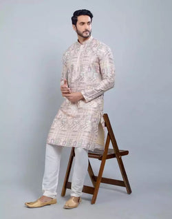 The Printed Kurta is a statement piece that screams luxury and sophistication. The all-over print, combined with intricate zari work creates an aura of elegance that is perfect for formal occasions like weddings. It's not only the design but also the comfortability factor which will make you fall in love with it instantaneously!