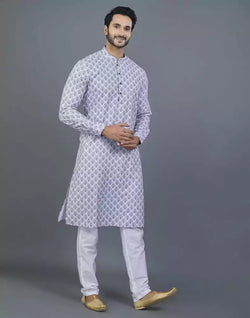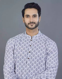 Elevate your style game with the Geometric Print Grey Color Cotton Kurta - a perfect blend of comfort and fashion. The trendy geometric pattern in soothing grey color is sure to make heads turn wherever you go. Crafted from high-quality cotton, this kurta promises utmost ease and breathability throughout the day. Don it confidently for any occasion and be ready to steal the show.
