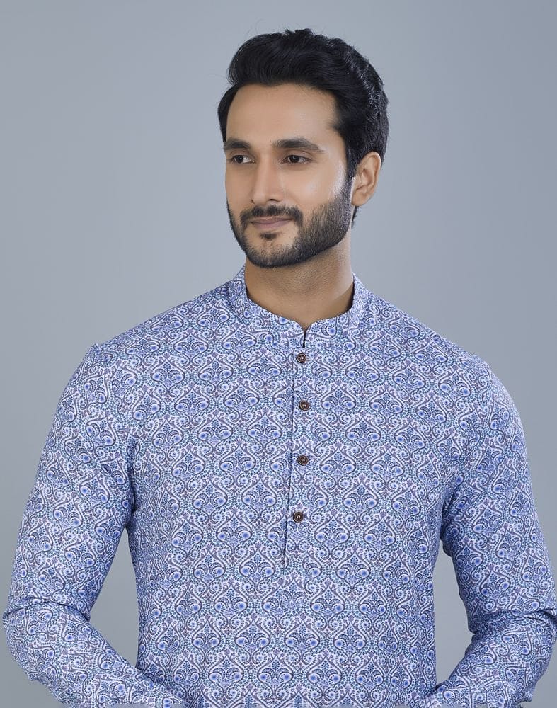 Indulge in the beauty of nature with our Botanical Kurta. Made from premium quality cotton, this glamorous blue printed piece will elevate your style game instantly. Embrace confidence and sophistication as you step out in this chic and trendy kurta.