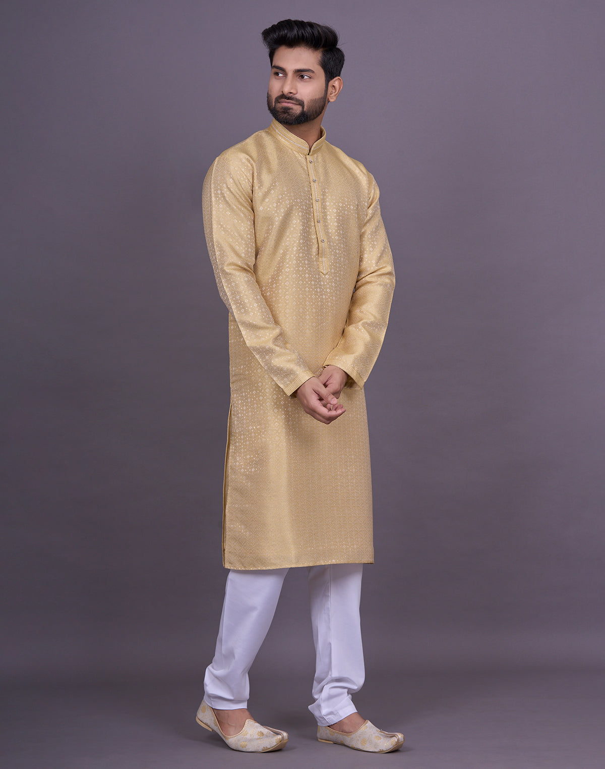 Image of Gold Coloured Self Design Jacquard Kurta Pajama - South India Shopping Mall