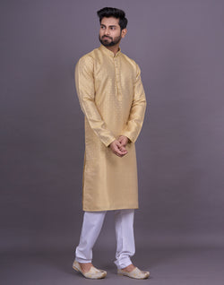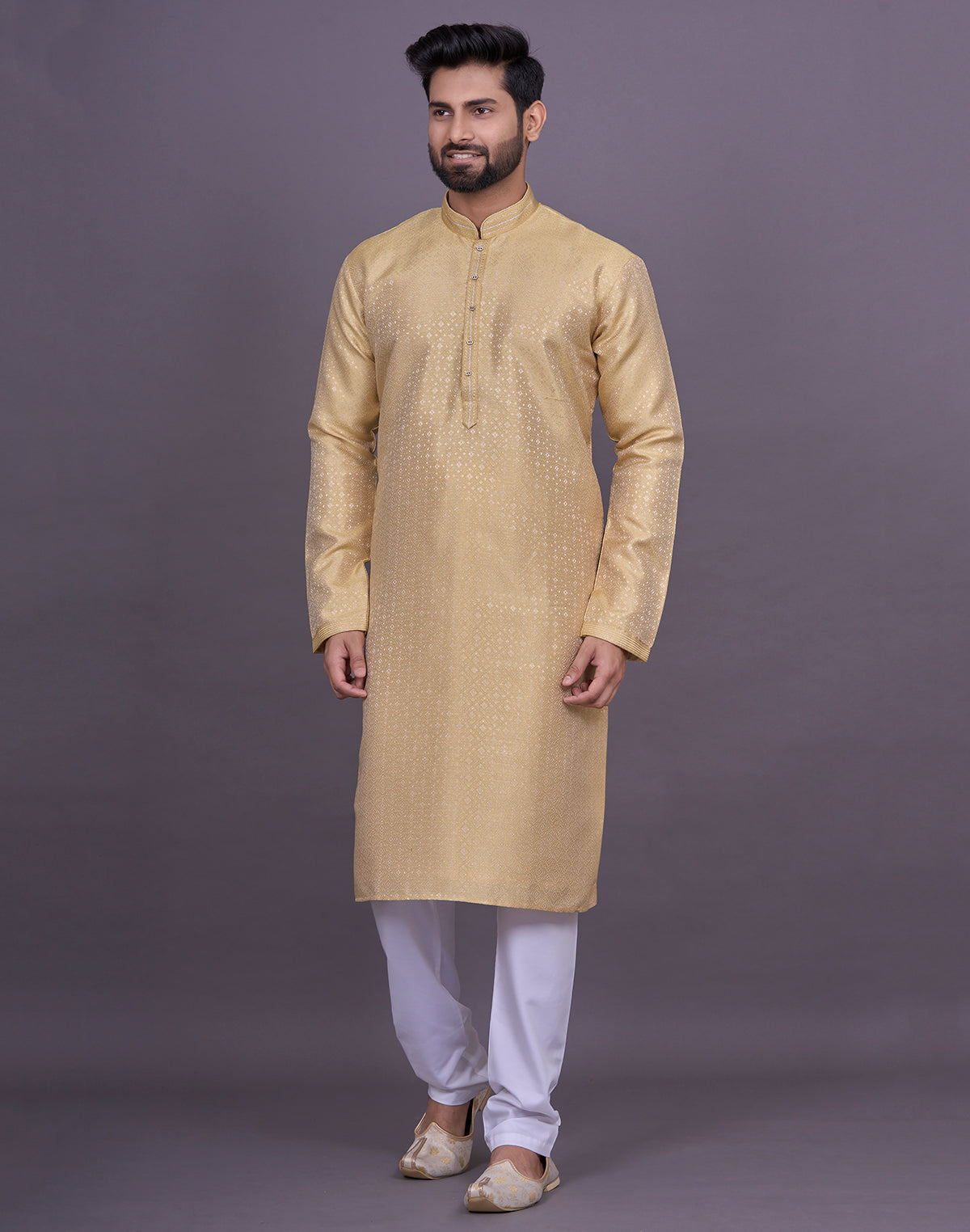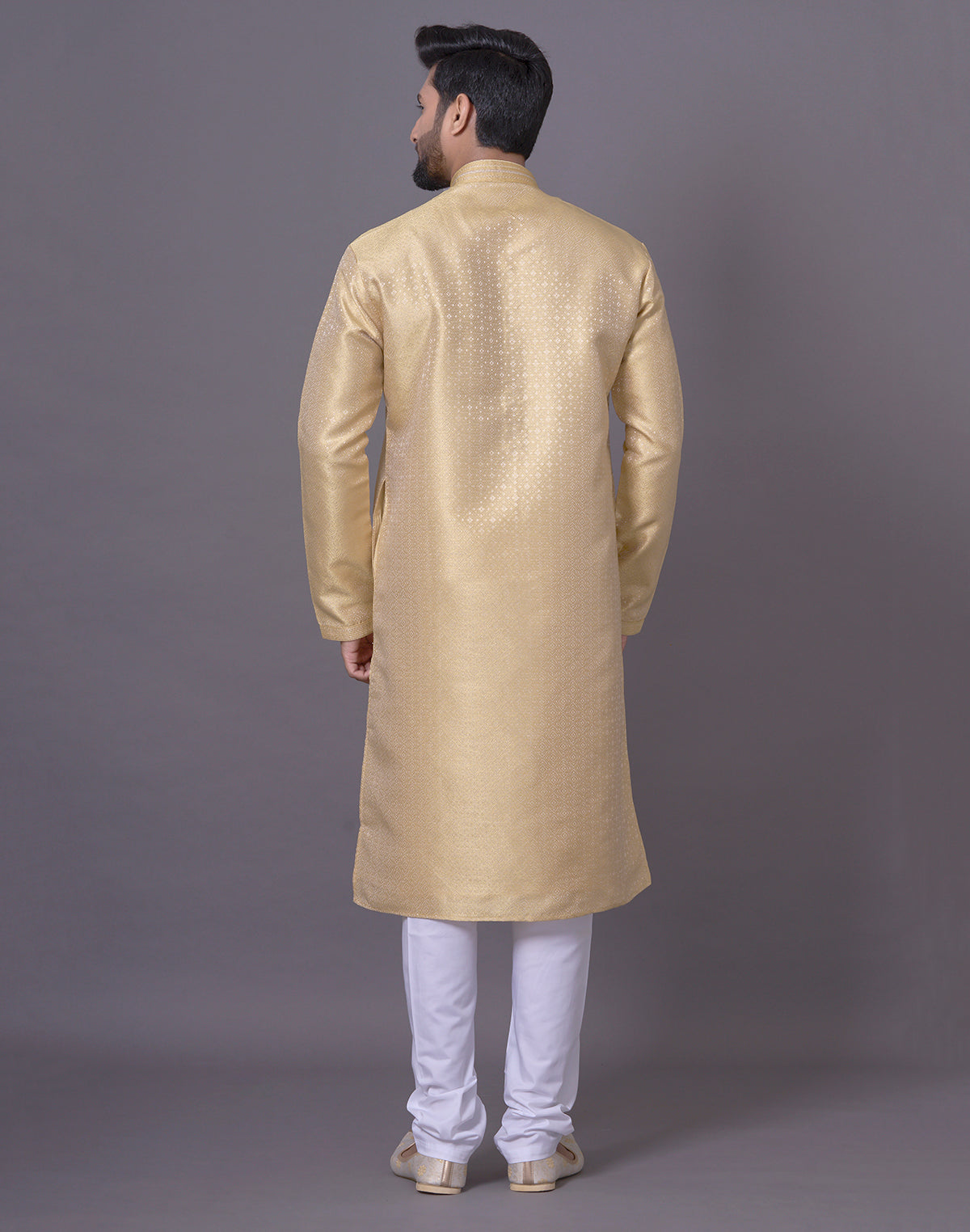 Gold Coloured Self Design Jacquard Kurta Pajama