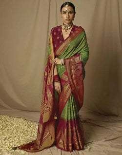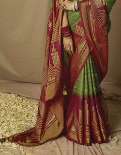 Stylish and new look Green Paisley Mica Print Soft Brasso Saree that makes you more beautiful when paired with the right kind of accessories.