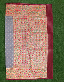 Make every moment special adorned in this Grey Banaras Bootis Paithani Border Saree that gives an elegant look?for this festive season.