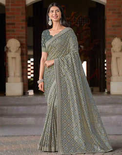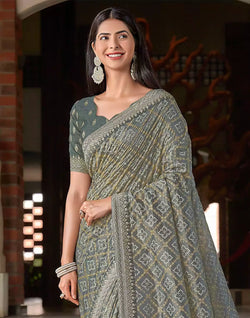 Be the indian beauty draped gorgeously in Grey Bandhini Print Soft Dola Silk Saree with work Blouse.
