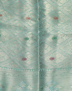 Look adorable draped in this Grey Floral pattern Weave Silk Saree.