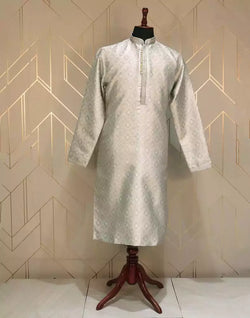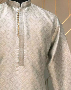 Look elegant and handsome in this Grey Floral Weave Jacquard Kurta Pyjama Set.