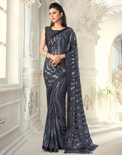 Look elegant and classic grey coloured soft georgette saree will be perfect addition to your ethnic wardrobe, offering a soothing and pretty vibe the adornment of sequence with embroidered work makes it impeccable.