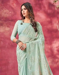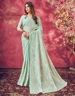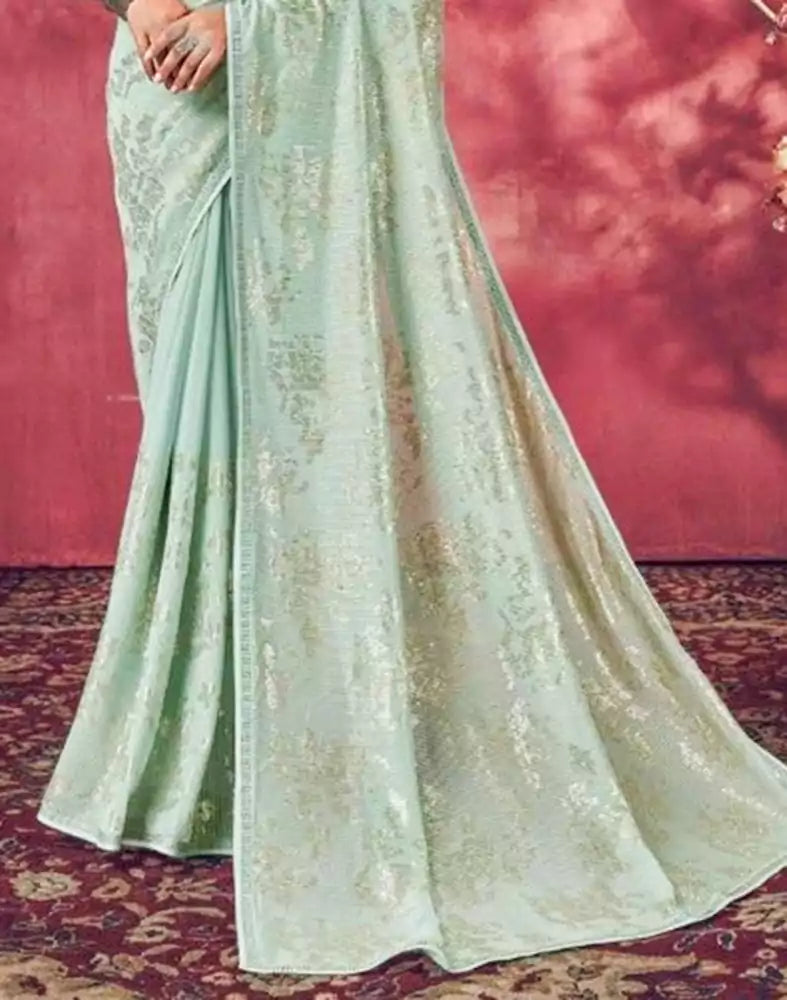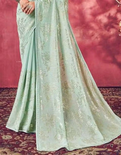 Drape this Light Blue Sequence Work Semi Georgette Saree to look elegant and beautiful.