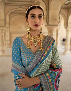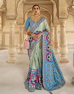 Gift your loved ones this Light Green Chevron Printed Dola Silk Saree and be the reason behind their smile.