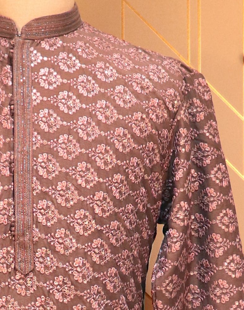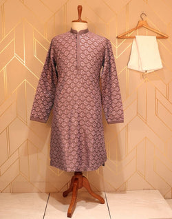 Feel the elegance in this royal look Light Pink Floral Chikankari Work Lucknowi Kurta Pyjama Set that gives you the perfect fit, comfort and style suitable for any small occasions.