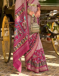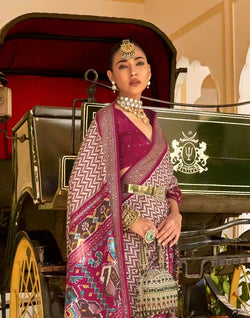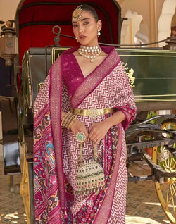 Look simple and beautiful in this Light Pink Zig Zag Patola Fancy Beads work Saree.
