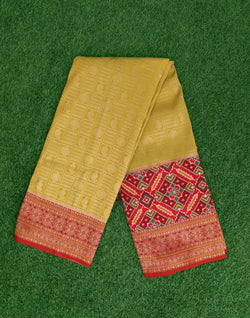 Elevate your traditional look with Paisely, the stunning Mehendi Green Woven design Pochampally Border Saree. This exquisite piece will make heads turn and leave you feeling confident and elegant. Add a touch of sophistication to your wardrobe with this must-have saree.