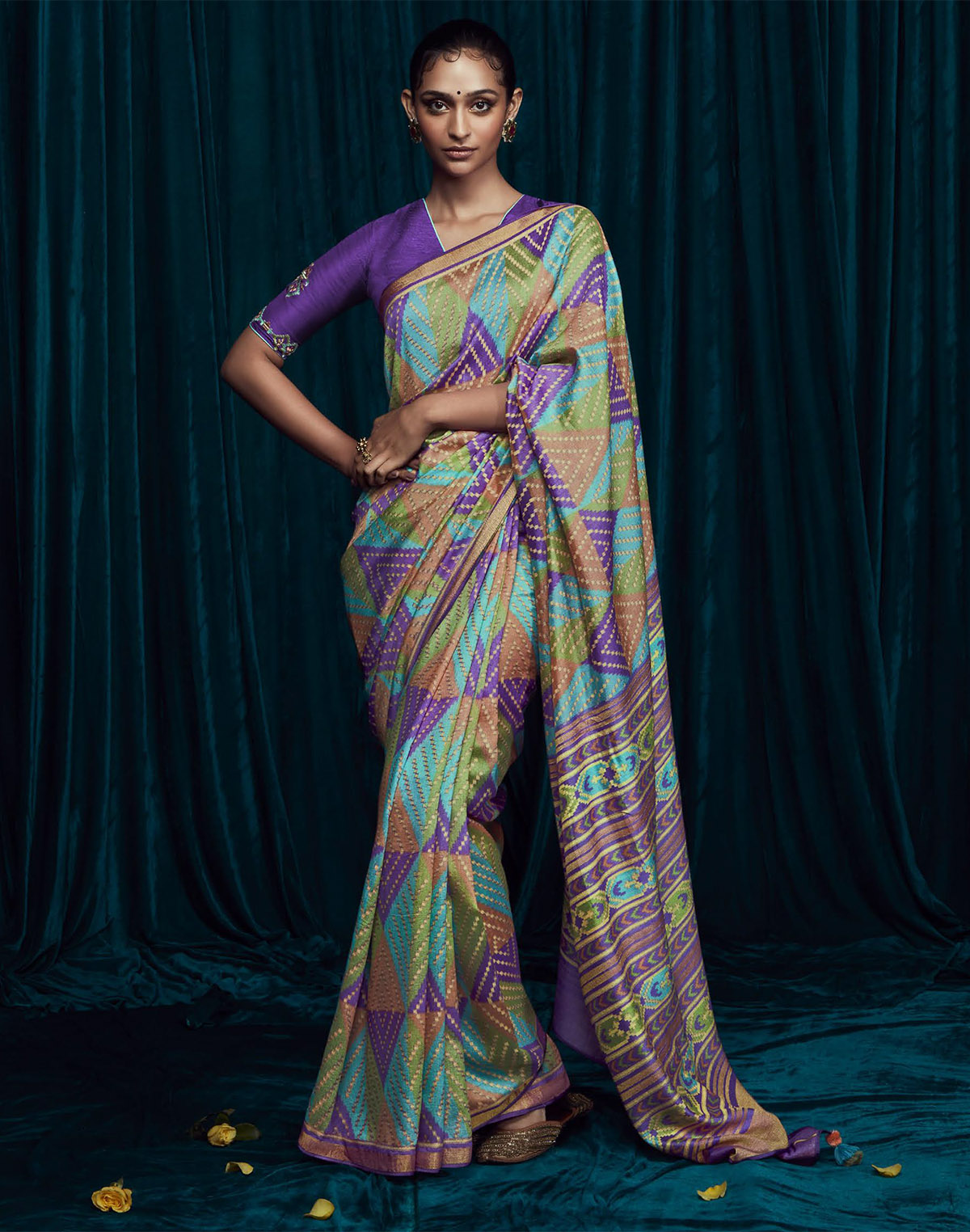 Brasso Saree is a beautiful sari with a striking print. If you are someone who loves to flaunt off your contemporary style and add a dash of chicness to your wardrobe then this saree is something you must get for yourself.