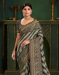 Beautiful sarees for a beautiful lady. Look the best in this Multi Color Striped Pattern Patola Saree.