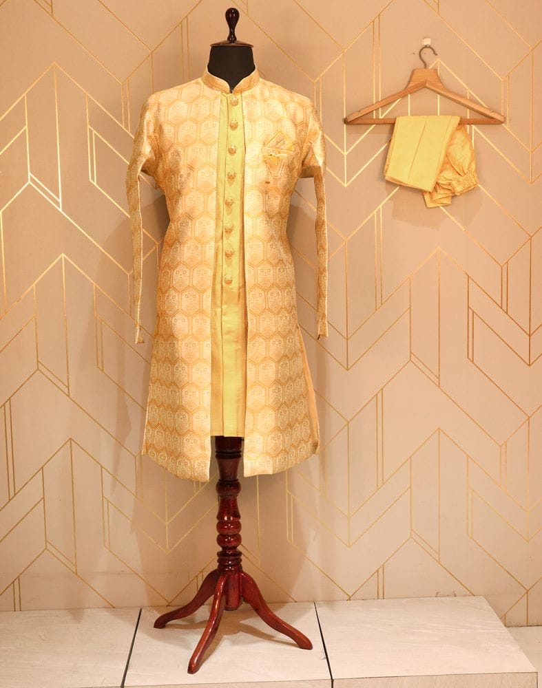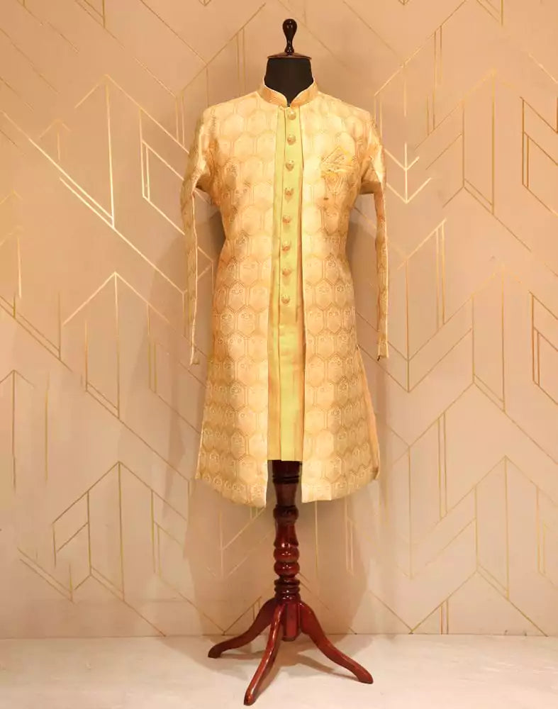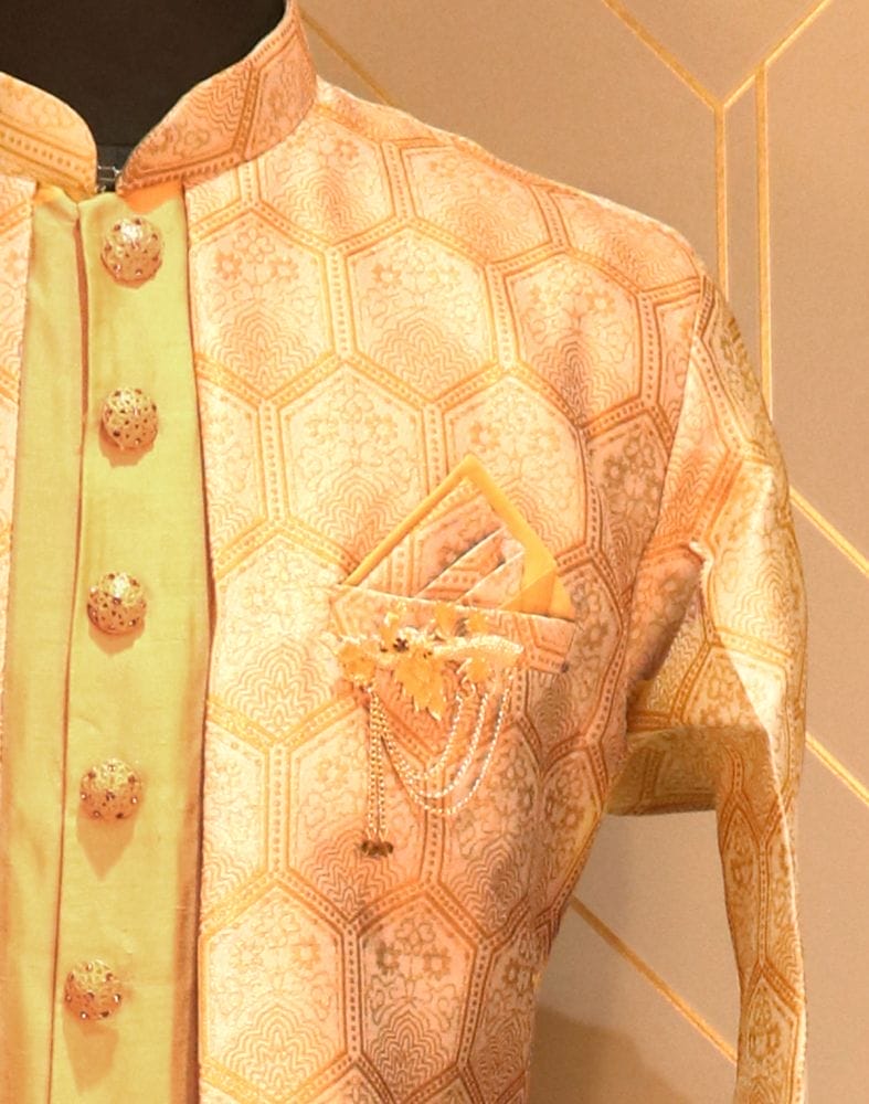 Artfully tailored in Raw Silk fabric for a subtle shine and superb feel to make you look traditionally trendy.