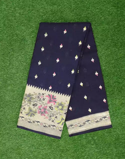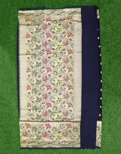 Look the best in this beautiful Navy Blue Butta Weave Semi Georgette Saree paired with the right kind of accessories.