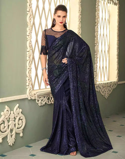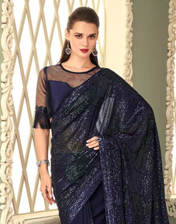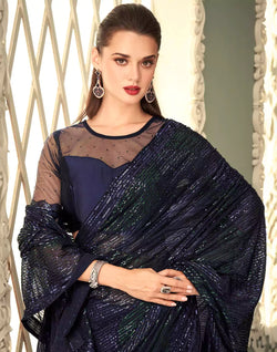 Drape this Navy Blue Georgette Fabric with Sequence Work Saree to look elegant and beautiful.