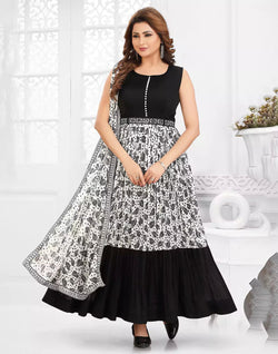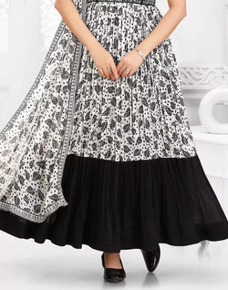 Get ready to turn heads in the charming Off White Floral Bunches Georgette Flared Kurti with Dupatta. The elegant floral print and flared silhouette add a touch of grace and sophistication to your look, making it a must-have addition to your wardrobe.