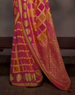 Stylish and new look Orange Coloured Soft Brasso Saree that makes you more beautiful when paired with the right kind of accessories.