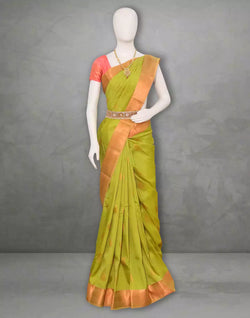 Elevate your style with Paisely, the perfect blend of tradition and elegance. This Parrot Green Butta Kanchi Pattu Saree features a stunning Copper Zari Border that adds a touch of sophistication to any outfit. Light weight and easy to drape, this saree is a must-have for any fashionista who wants to stand out from the crowd. Make a statement with Paisely and embrace your inner goddess in style!