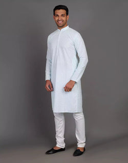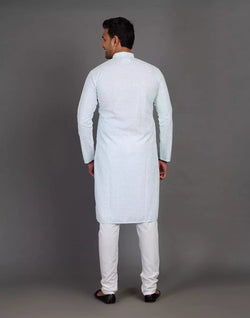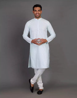 This elegant Georgette Kurta Pyjama Set features a simple self-thread and sequence design on the kurta, offering a refined and subtle aesthetic. The kurta is paired with an off-white pyjama, creating a perfect balance of tradition and modern style. Ideal for casual or semi-formal occasions, this set exudes comfort and timeless appeal.