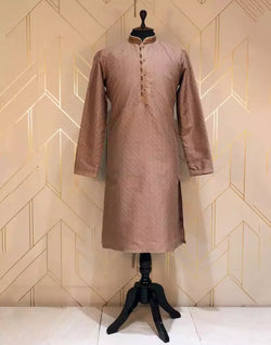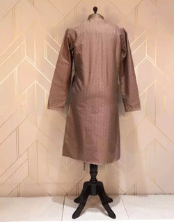 Look elegant and handsome in this Self Design Brown Coloured Jacquard Kurta Pyjama Set.