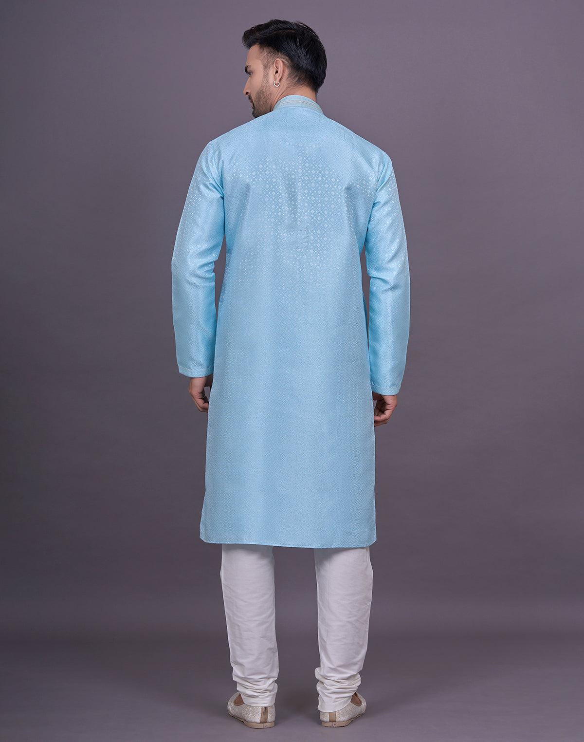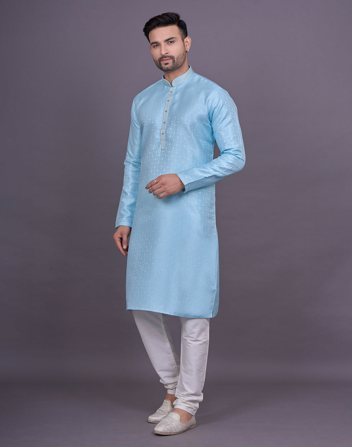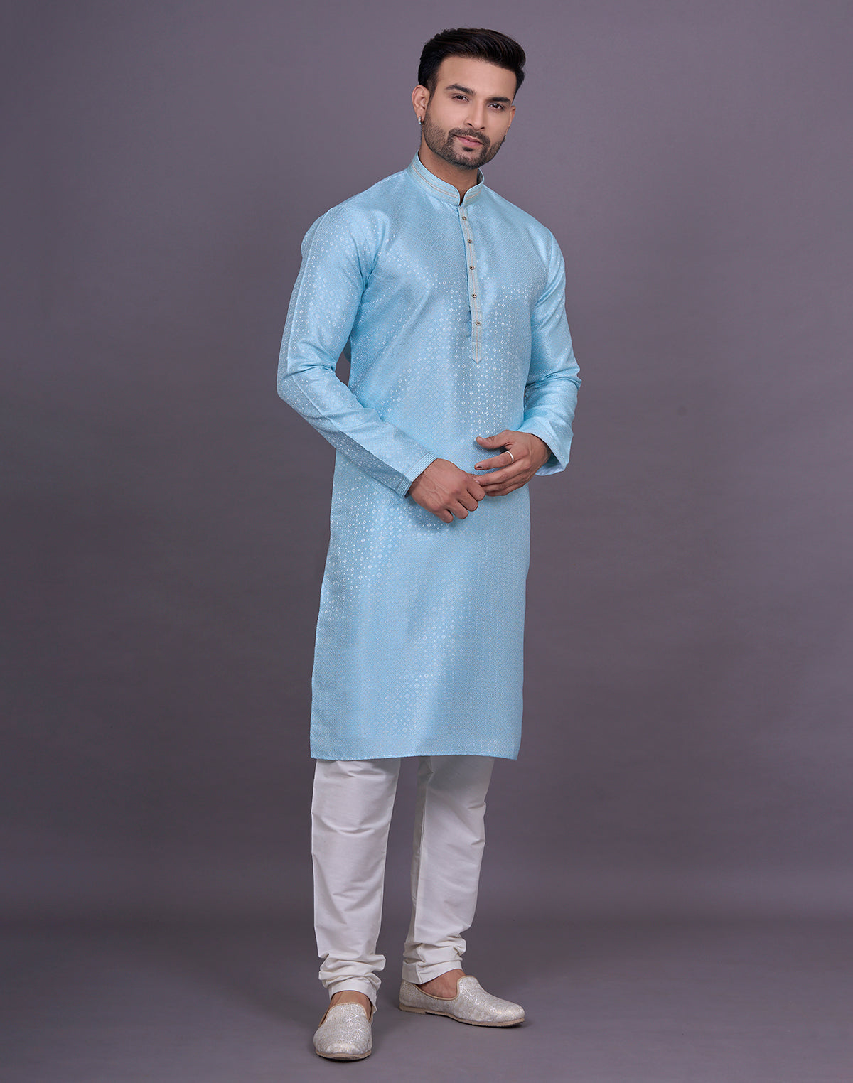• Image of Self Geometric Design Sky Colour Jacquard Kurta Pajama - South India Shopping Mall