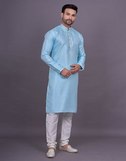 Self Geometric Design Sky Colour Jacquard Kurta Pajama