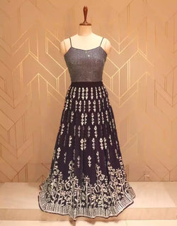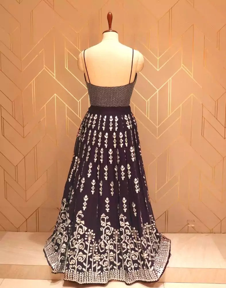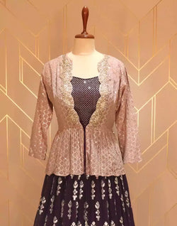 Trendy and elegant wine floral gotta patti work georgette crop top with beautiful coat that makes you look picture perfect.