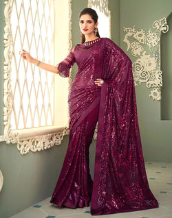 Indulge in sheer elegance with our Plain Wine Georgette Sequence work Saree. This stunning piece is designed to make you feel confident and glamorous at any occasion. The rich wine color adds a touch of sophistication, while the delicate sequence work exudes timeless charm. Crafted from high-quality georgette fabric, this saree drapes beautifully and offers utmost comfort throughout the day or night. Elevate your style game effortlessly with our breathtaking Plain Wine Georgette Sequence work Saree - a true reflection of your exquisite taste.