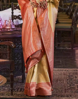 Be the traditional Indian beauty draped in this Yellow all over Self Design Weaving Soft Silk Saree.